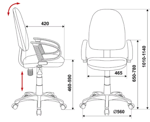 Высота кресла: 1010-1140