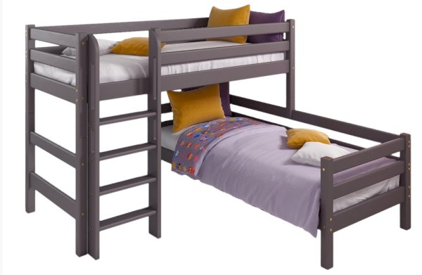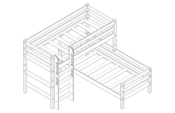 В состав варианта входит: Пакет № 1 базовый, кол-во 2 шт. Пакет № 2 латы, кол-во 2 шт. Пакет № 3 задняя защита от падения, кол-во 4 шт. Пакет № 4 передняя защита 1/4, кол-во 1 шт. Пакет № 7 прямая лестница ля полувысокой кровати, кол-во 1 шт. Пакет № 9 опоры для угловой кровати, кол-во 1 шт.