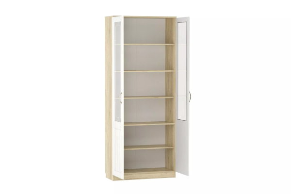 Двустворчатый шкаф-витрина Оливия НМ 040.62 Х добавит больше света в пространство гостиной. Полка за стеклянной вставкой идеальна для размещения домашней библиотеки или изящного фарфорового сервиза. В закрытом отделении можно хранить документы, элементы одежды и другие бытовые предметы.