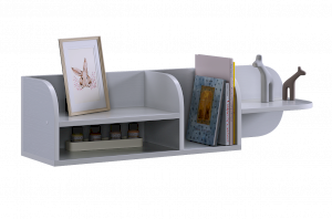 Полка состоит из прочного ЛДСП и имеет две открытые секции, которые удобно использовать для книг, игрушек, декора или учебных принадлежностей. Закруглённые боковые элементы придают конструкции мягкий, безопасный внешний вид, что особенно важно для детской комнаты.