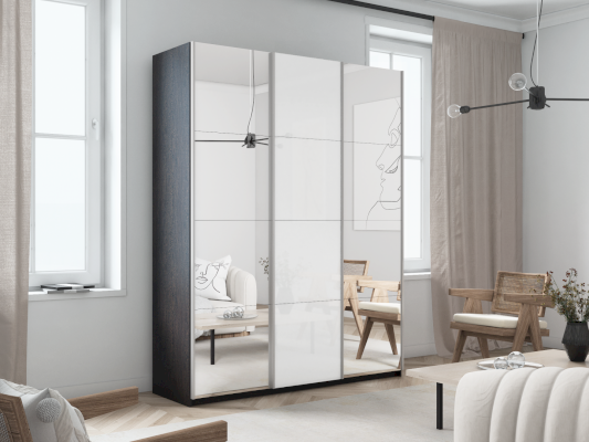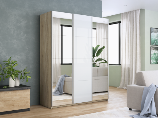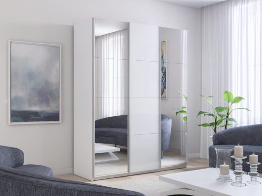 Шкаф-купе 3-х дверный Прайм Зеркало/Белое стекло/Зеркало (Е1) - за 75 624 руб. в Южно-Сахалинске. Купите на сайте mebelmarket-yuzhno-sahalinsk.ru или по телефону 8(800)505-30-63 уже сегодня! Уточнить наличие, комплектацию, актуальную цену можно бесплатно у менеджера ежедневно. Закажите Шкаф-купе 3-х дверный Прайм Зеркало/Белое стекло/Зеркало (Е1) до конца акции! Доступна покупка в кредит, рассрочку. Доставим со склада или на заказ.