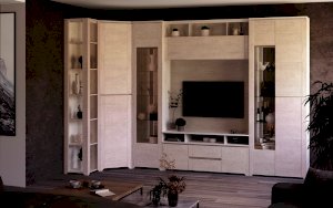 В центре модульного набора будет отлично смотреться ТВ-секция с навесной полкой. Шкафы-серванты с зеркальными дверцами позволят Вам расположить сервиз, предметы декора и книги. Вместительный комод с навесным зеркалом станут идеальным дополнительным вариантом для хранения одежды, белья и других личных вещей.