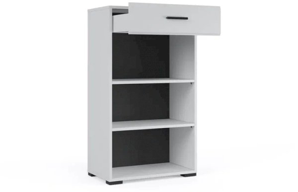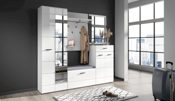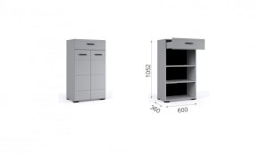 Комод Йорк сочетает в себе практичность и эффектный внешний вид. Глянцевые белые фасады High Gloss из МДФ наполняют помещение светом, делают его воздушнее. Тумба оснащена выдвижным ящиком на телескопических направляющих полного выдвижения для хранения необходимых мелочей. Отделение с распашными дверями укомплектовано вместительными полками для коробок с обувью или сумок. Идеально компонуется со всеми модулями системы Йорк.
