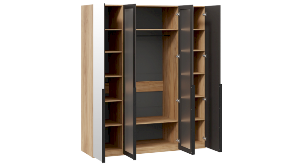 Шкаф для одежды 580 с 2 зеркальными и 2 стеклянными дверями Порто СМ-393.07.115 (ТриЯ)