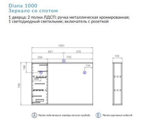 Зеркало Diana 1000 со спотом