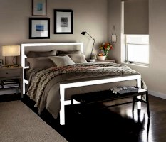Благодаря отсутствию сплошного полотна изголовья и основания и его замены на горизонтальные перекладины модель выглядит изящно и совершенно не громоздко, благодаря чему может гармонично дополнить любой интерьер в современной стилистике.