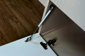 Металлические ручки и выкатные ящики на шариковых направляющих обеспечивают удобный доступ к вещам. Регулируемые металлические опоры гарантируют стабильность конструкции.