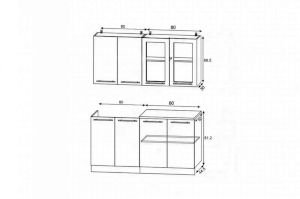 Высота верхних шкафов: 685 мм