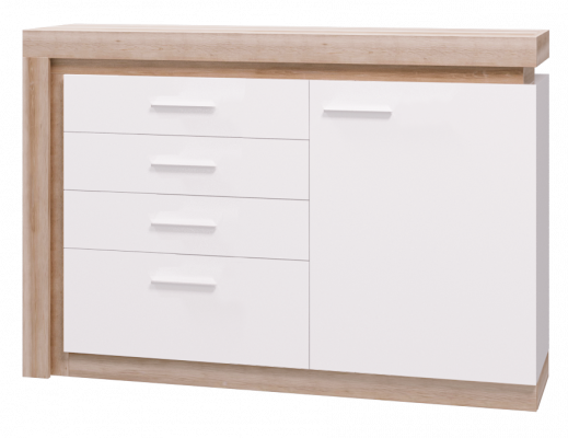 - Коллекция представлена в следующем цветовом решении: Корпус ЛДСП 16 мм  в декоре «Дуб Сакраменто» и фасад МДФ 16 мм в декоре  «Белый снег глянец»