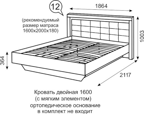 Кровать двойная 1600 мм с ортопедическим основанием №12